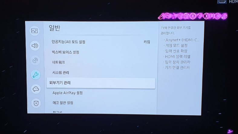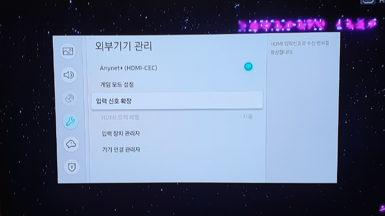 3. 입력 신호 확장 -> PC가 연결된 HDMI 포트를 클릭 -> 닫기