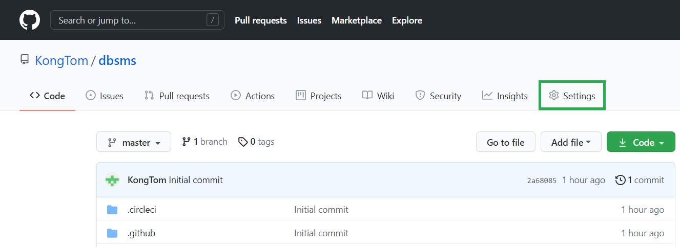 프로젝트 화면에서 상단 탭 중 가장 오른편에 있는 Settings로 들어갑니다.