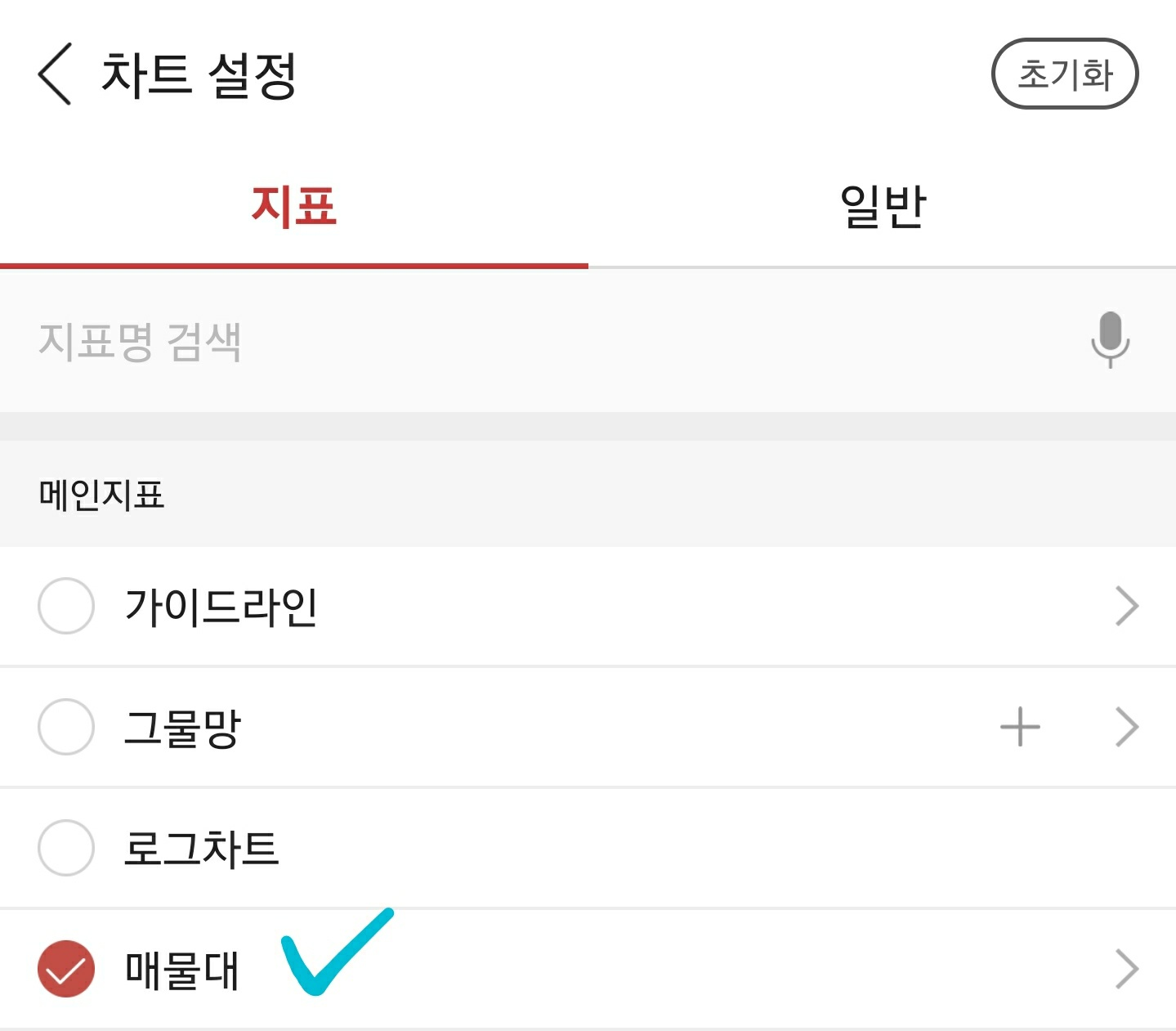 매물대는 차트 설정을 통해서 눈으로 확인해볼 수도 있다. 모든 주식 프로그램(HTS, MTS)의 차트 설정에 가면 매물대 항목을 찾을 수 있다. 이 항목을 체크하여 매물대가 표시되게 해 보자.